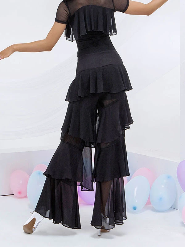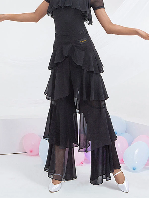 Ballroom Dance Costumes Black Polyester Bottoms Flared Pants Dance Dress