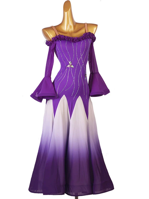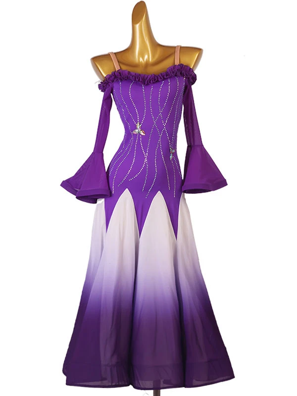 Ballroom Dance Costumes Purple Women’s Sexy Polyester Rhinestones Dress Dancer Dance Dress