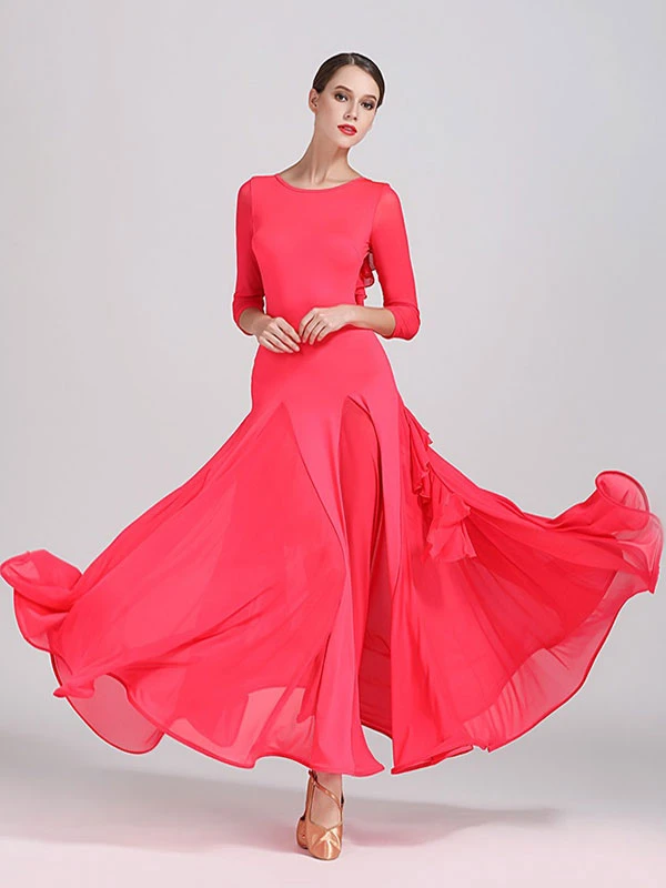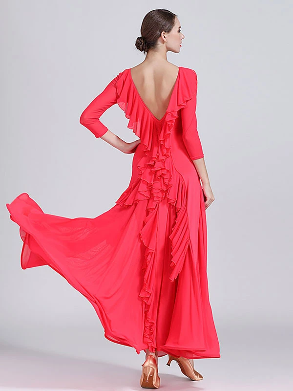 Ballroom Dance Costumes Silk Ruffle Backless Dress Dancer Women Dancing Wear