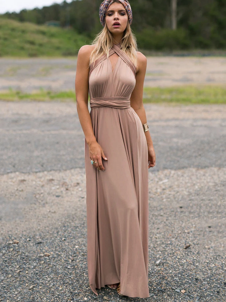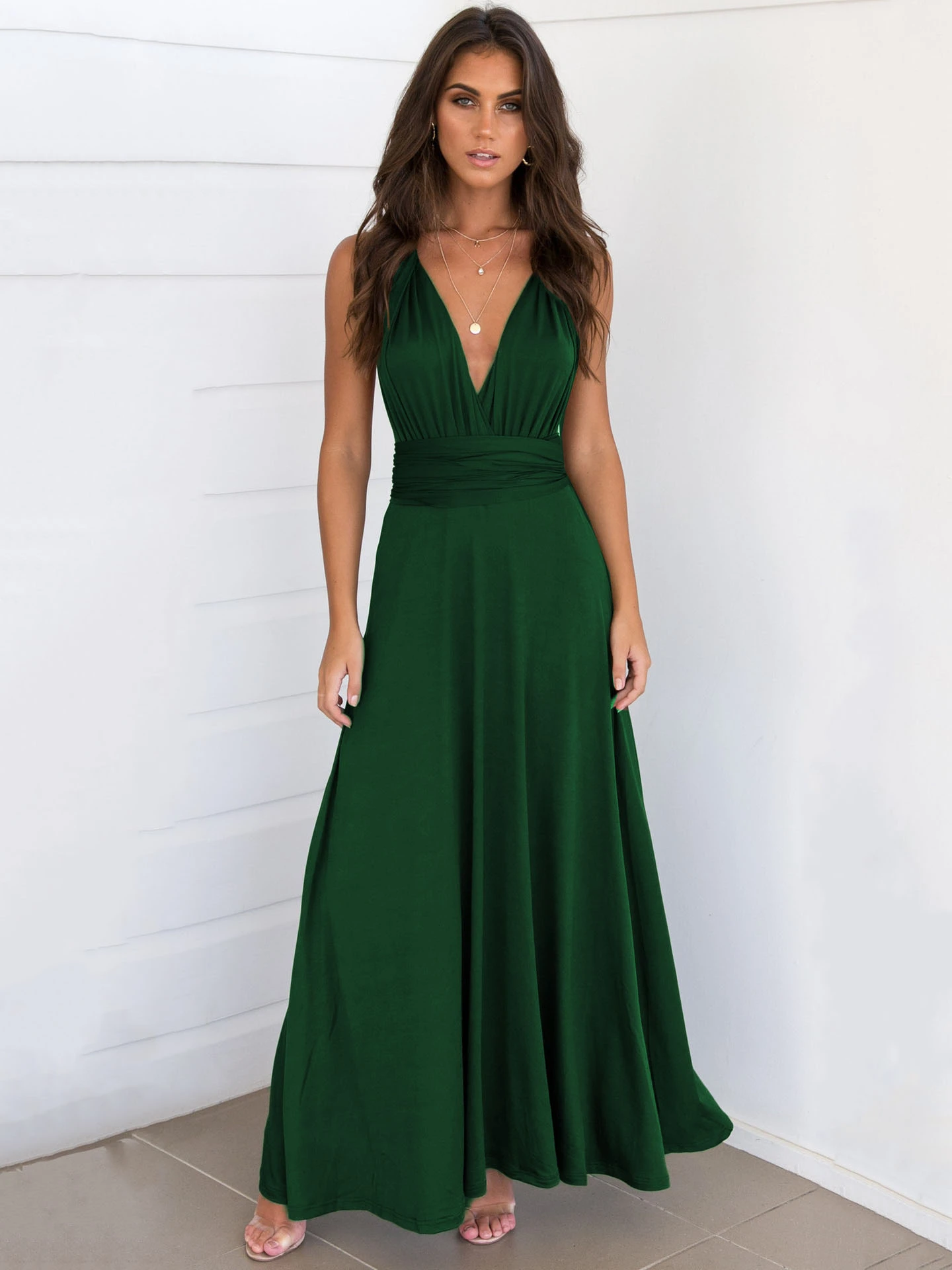 Birthday Sexy Maxi Dress Sleeveless Plunging Neck Backless Solid Color Evening Dress