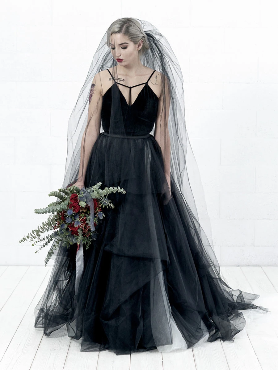Black Loyal Wedding Dresses 2023 Velour A-Line Sleeveless Pleated With Train Bridal Dress Free Customization