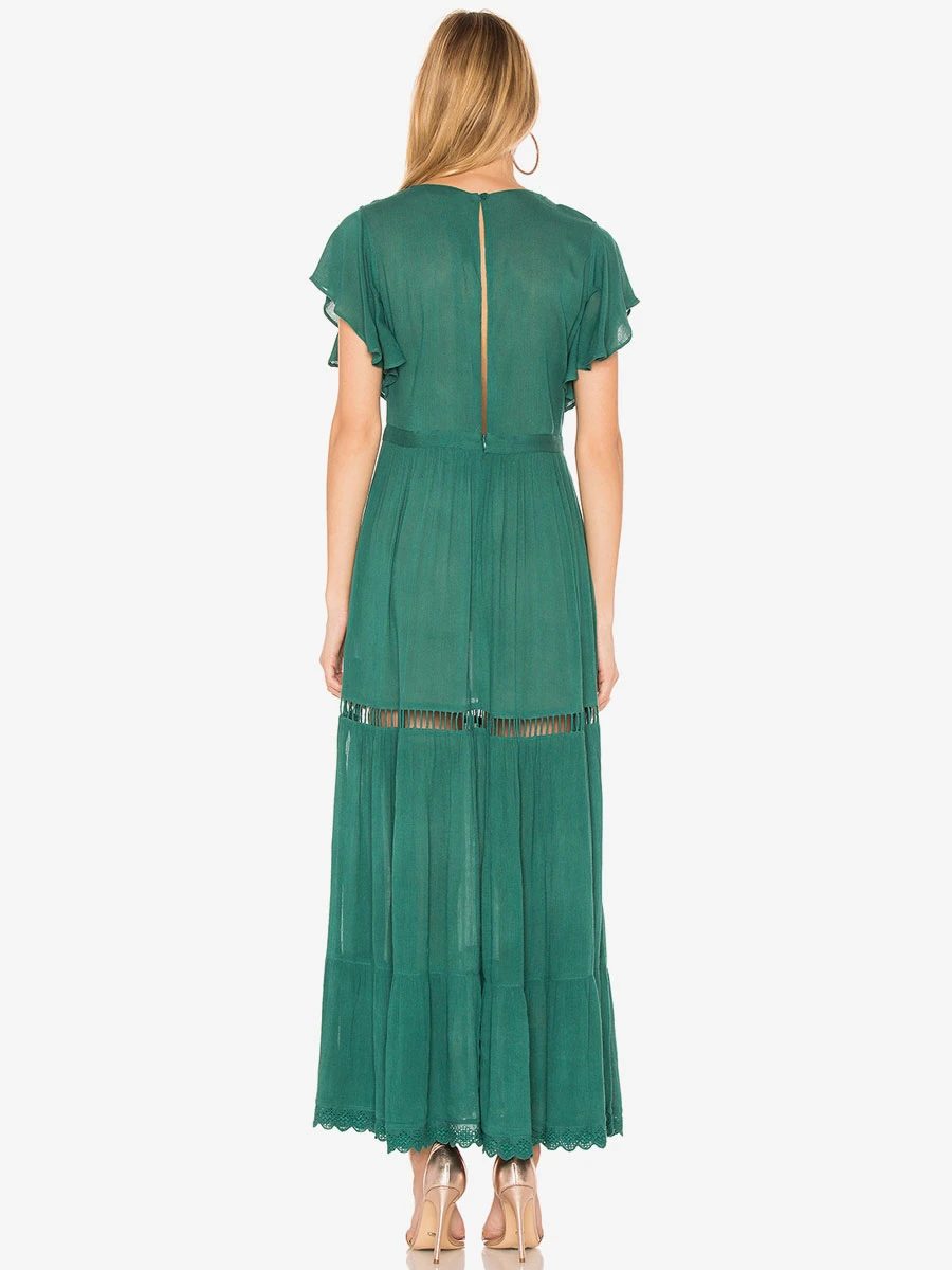 Boho Dress Light Pink V-Neck Short Sleeves Embroidered See-through Bohemian Gypsy Beach Vacation Summer Maxi Dress For Women