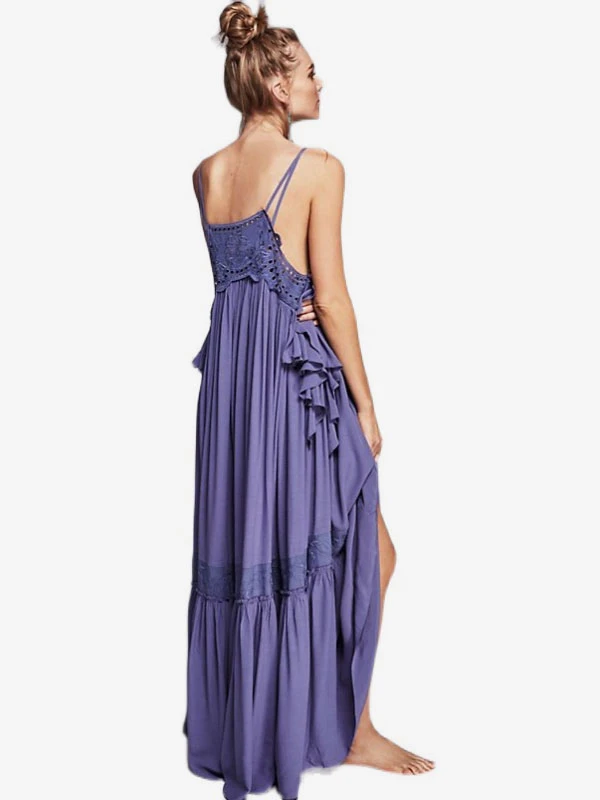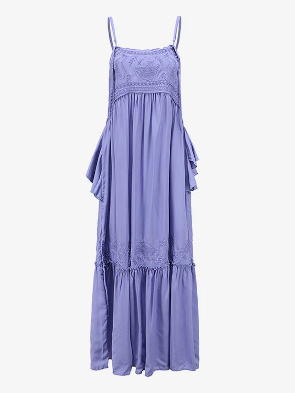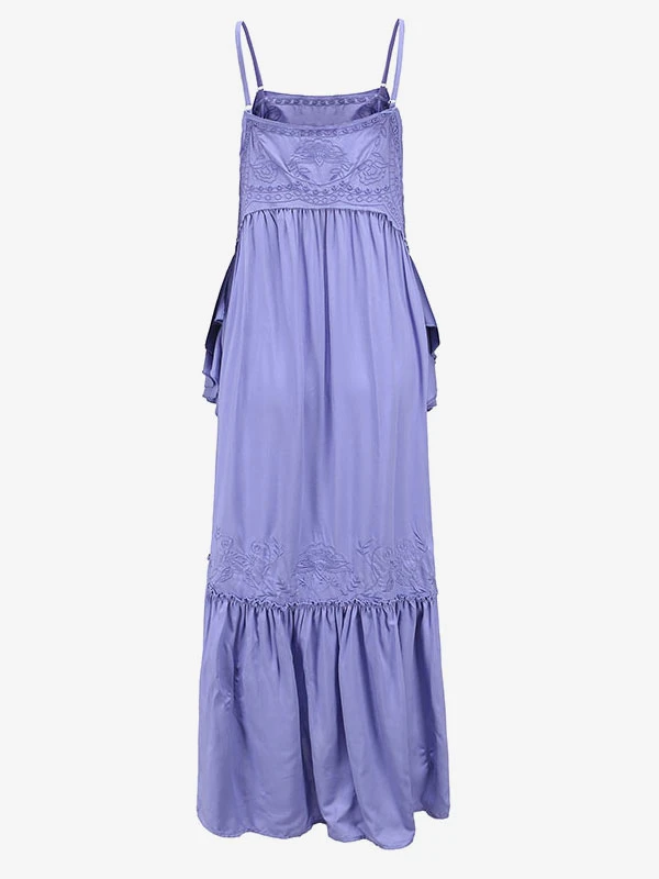 Boho Dress Lilac Embroidered Sleeveless Bohemian Gypsy Beach Vacation Summer Layered Long Dress For Women