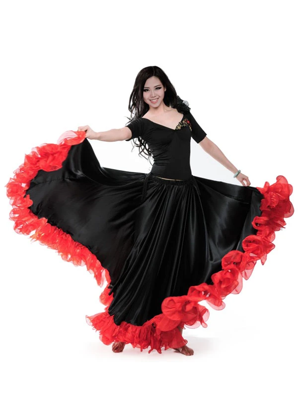 Burgundy Dance Costumes Female Flamenco Dress Billowing Mesh Adults Spanish Dancer Ballroom Dress Paso Doble Skirt Carnival