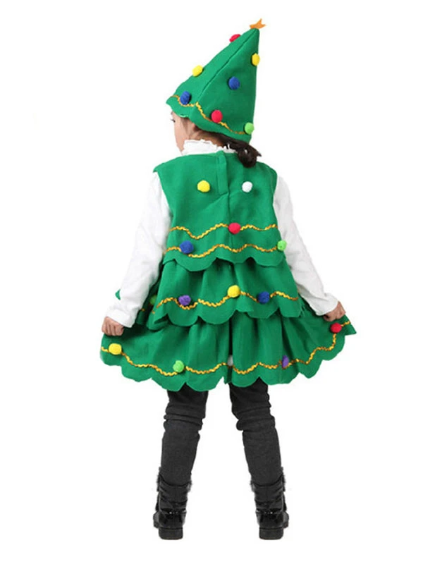 Christmas Green Santa Tree Costume Polyester Fiber Hat Dress Christmas Holidays Costumes Full Set