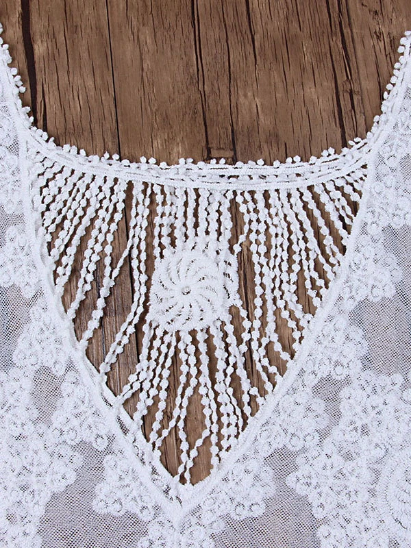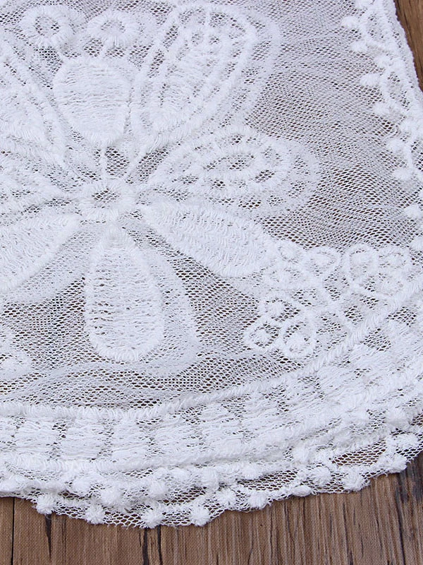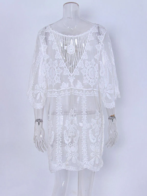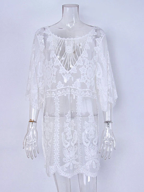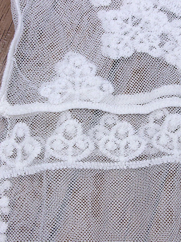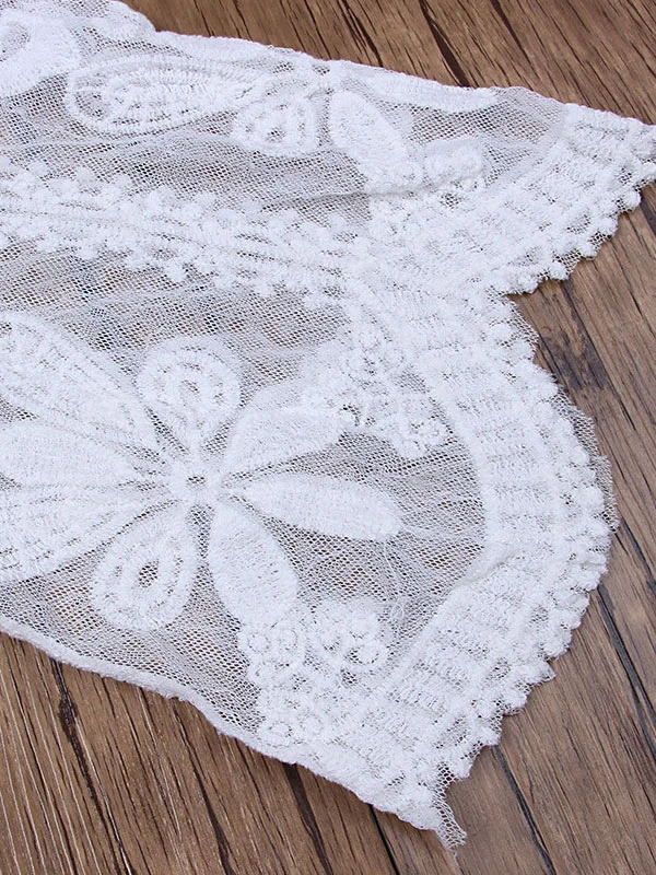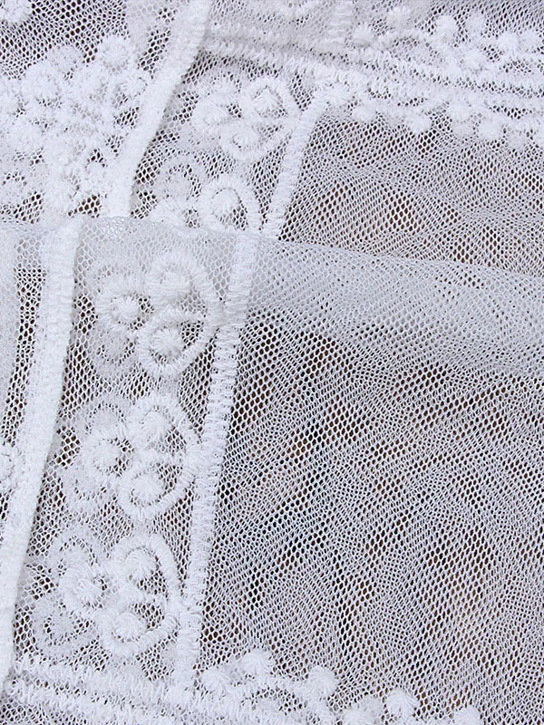 Cover Ups White Pleated Jewel Neck Half Sleeves Convertible Lace S