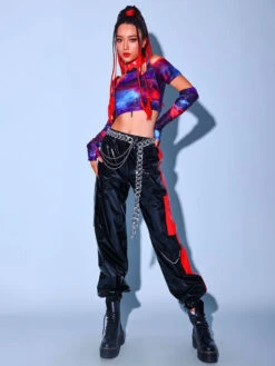 Jazz Dance Costumes Black Women Grommet Gloves Shorts Top 3 Pieces Dancing Wear Halloween
