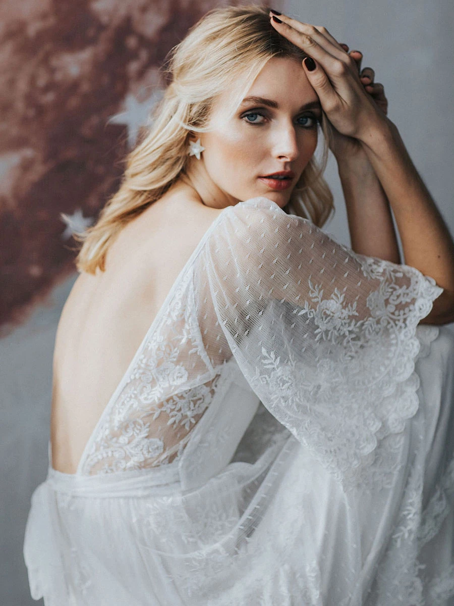 Be the first to review “Ecru White Boho Wedding Dress Lace A-Line Floor-Length Backless Short Sleeves V-Neck Bridal Dress Free Customization” Cancel reply