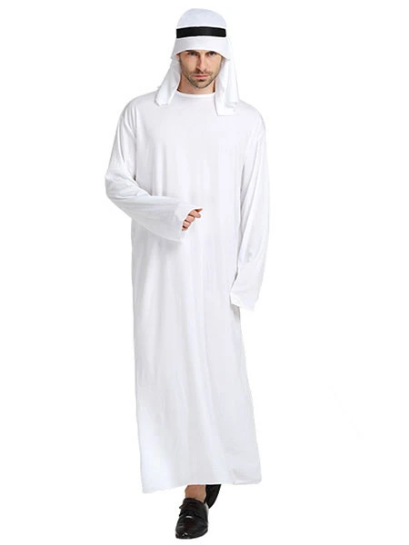 Halloween Arabian Costume Men’s White Gown With Headband Asian Costume