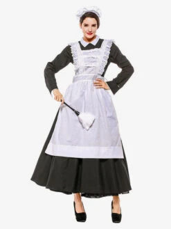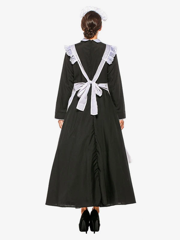 Halloween Costumes Woman’s Maid Black Dress Apron Cotton Halloween Holidays Costumes