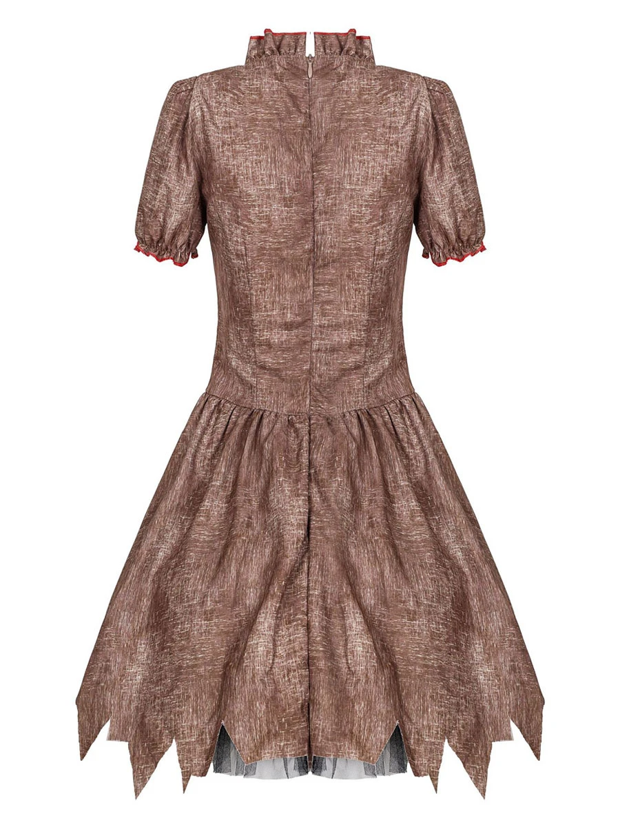 Halloween Zombie Costumes For Women Light Brown Scary Dress Headwear Polyester Holidays Costumes
