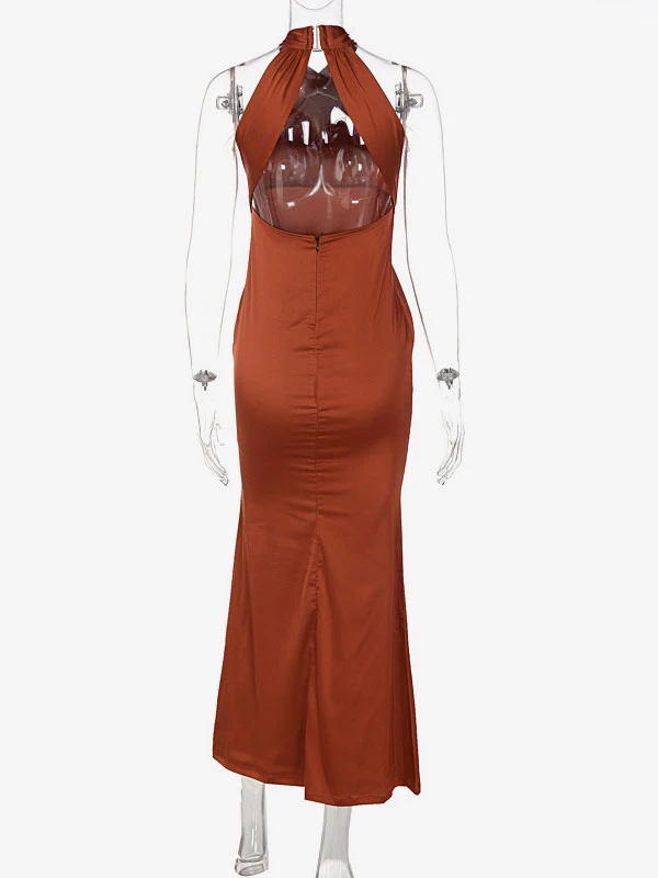 Halter Maxi Dress Sleeveless Sexy Stretch Pleated Floor Length Dress