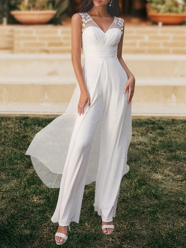 Ivory Bridal Jumpsuit Lace Lace Ankle-Length A-Line V-Neck Sleeveless Wedding Jumpsuit Free Customization