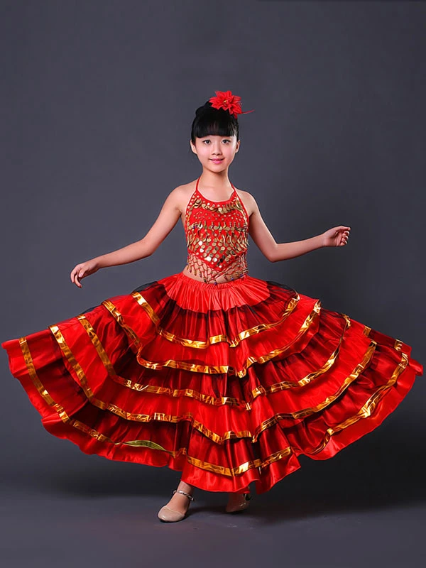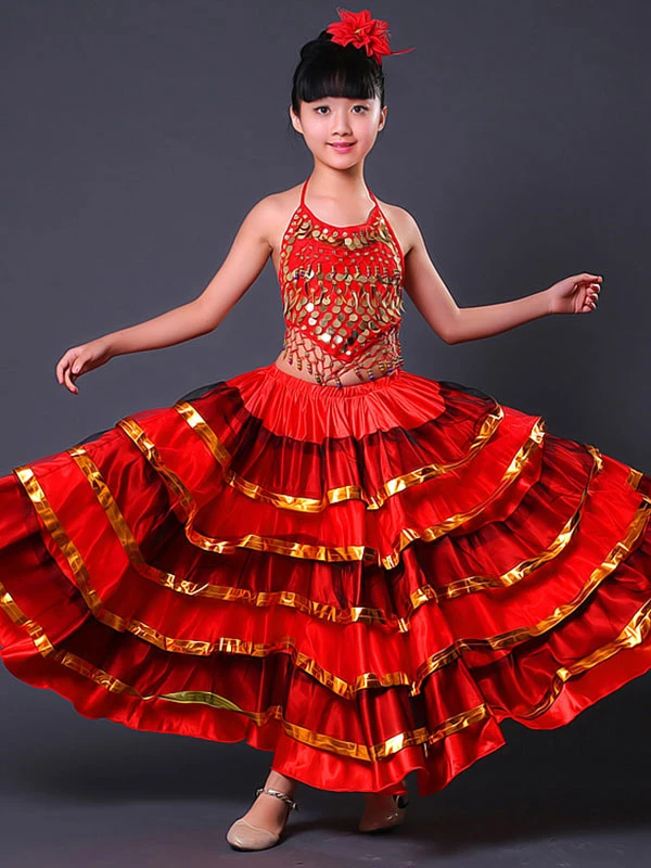 Kids Belly Dance Costumes Flamenco Dress Paso Doble Costumes Spanish Skirt For Girls Carnival