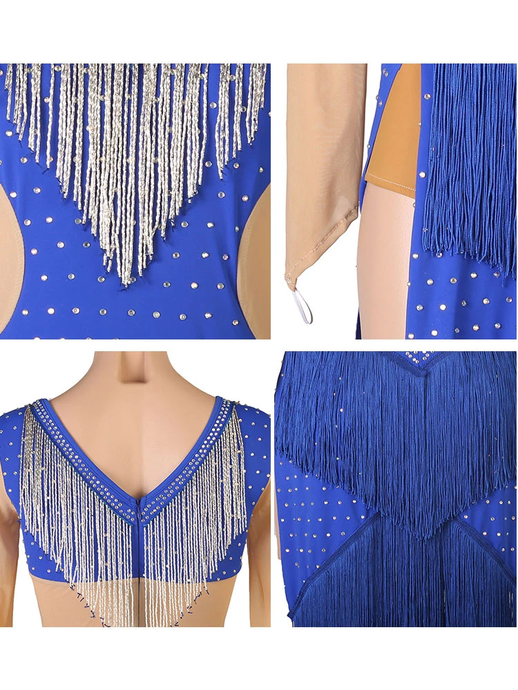 Latin Dance Costume Blue Women’s Polyester Dress Sexy Fringe Rhinestones Latin Dancer Dancing Costume