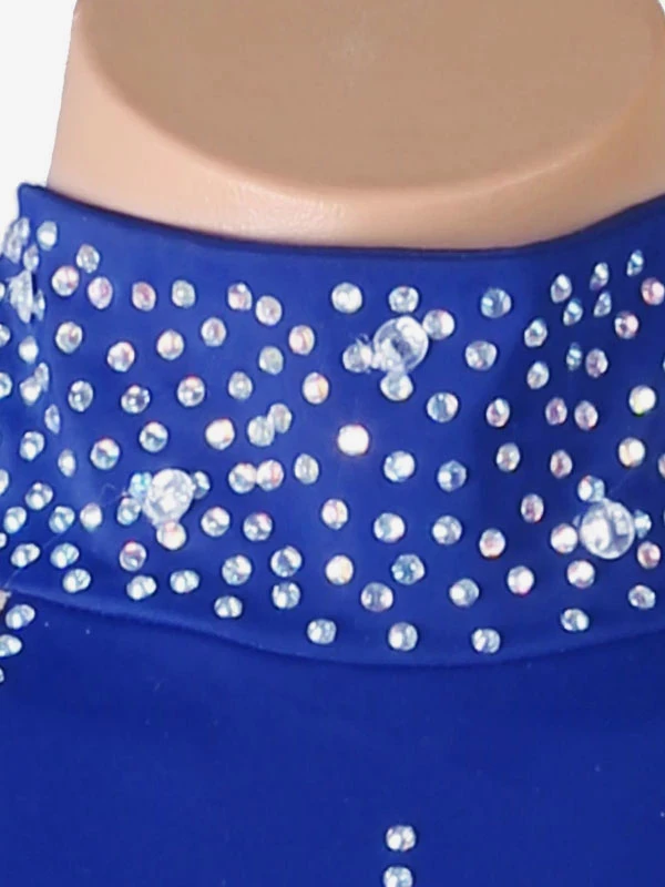 Latin Dance Costume Blue Women’s Rhinestones High-slit Bodycon Sexy Polyester Dress Dancing Costume