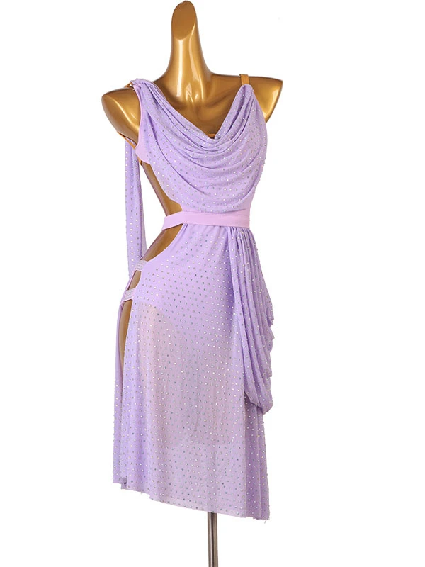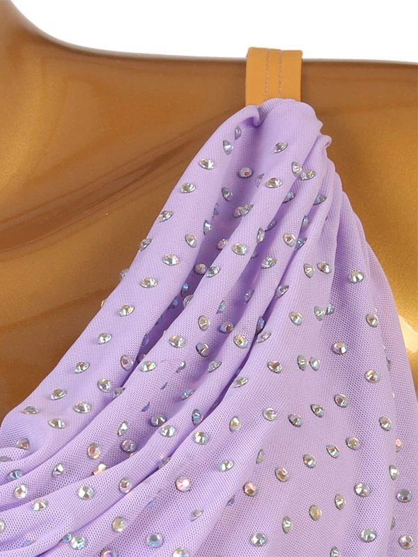 Latin Dance Costume Lavender Women’s Polyester Dress Open Shoulder Sexy Rhinestones Latin Dancer Dancing Costume