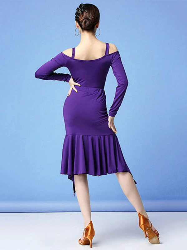 Latin Dance Costumes Dresses Fringe Ruffle Slit Women Dancing Wears Outfit Carnival