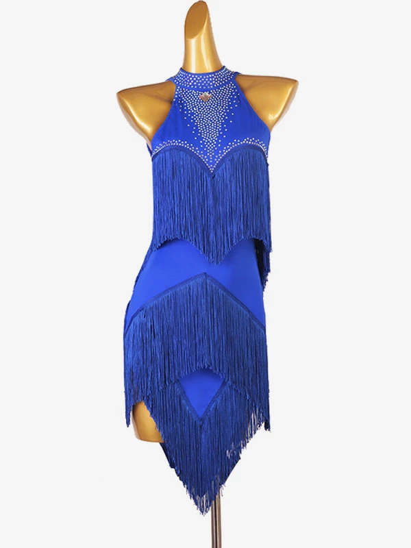 Latin Dance Dresses Royal Blue Women’s Set Lycra Spandex Dress Dancing Wear