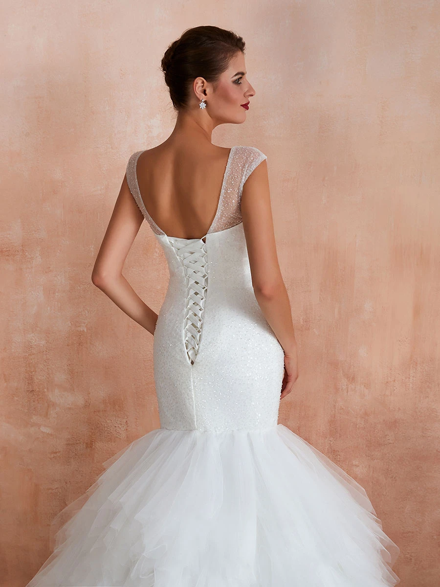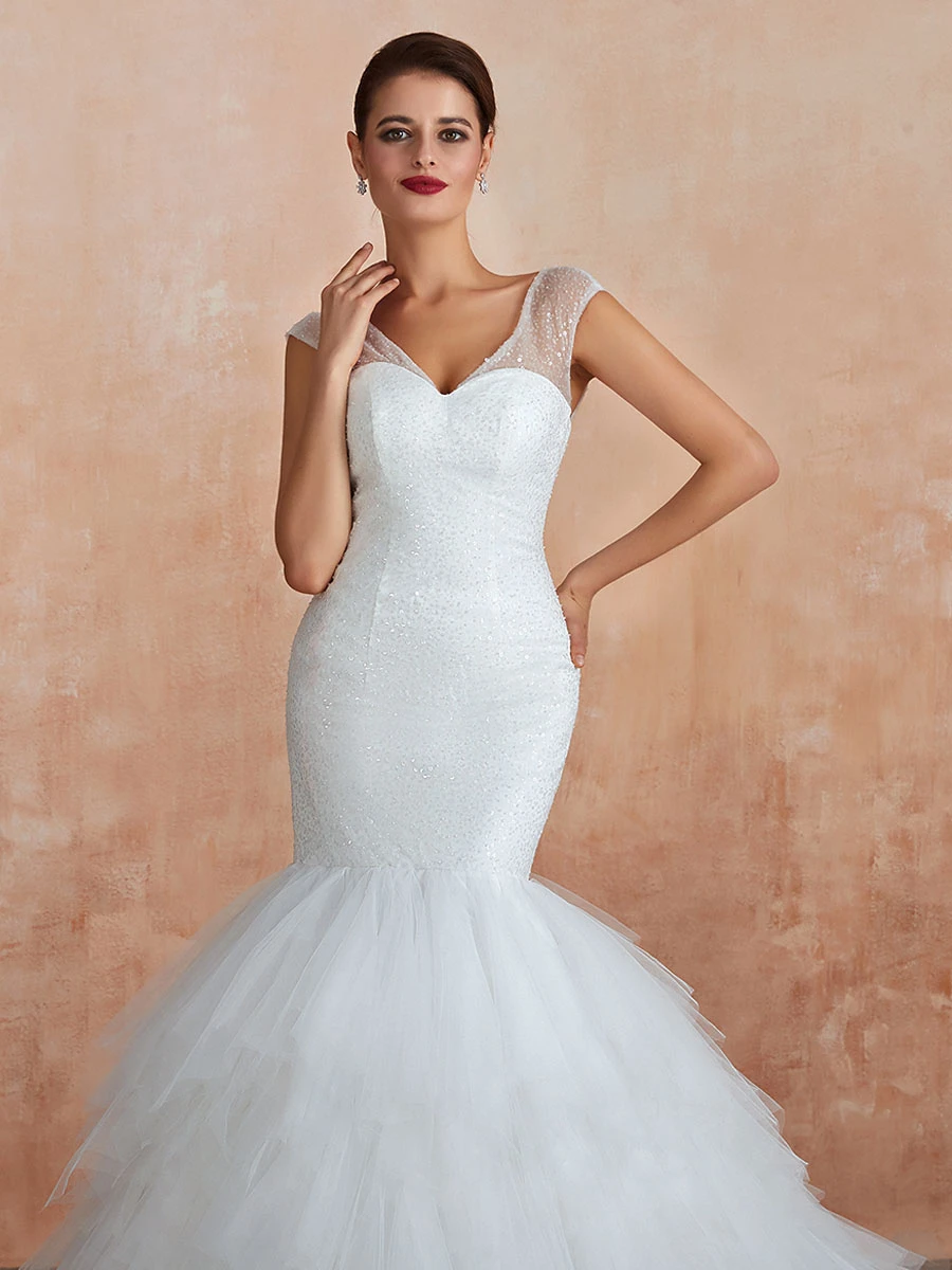 Mermaid Wedding Dress 2023 Beaded V Neck Sleeveless Bridal Gowns With Train