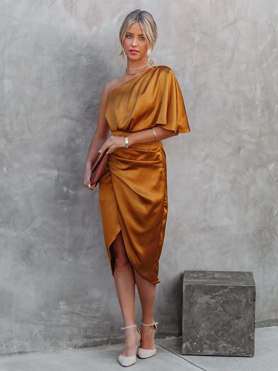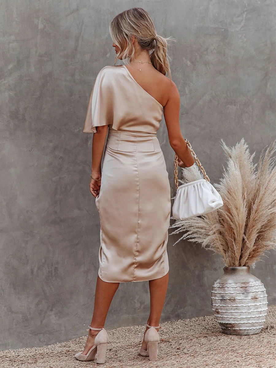 | Neckline | One Shoulder | Fabric | Satin Fabric |
