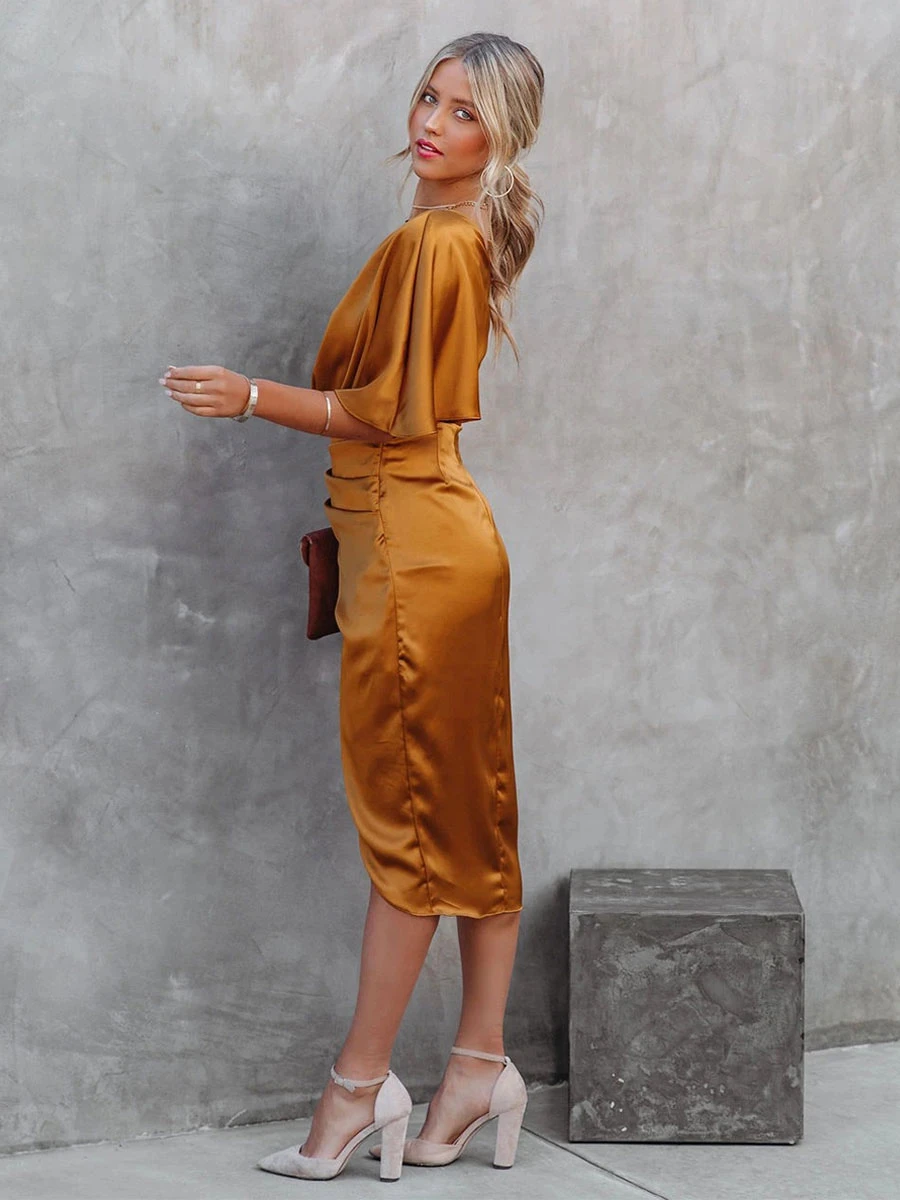 Pleated Backless Sexy One-Shoulder Short Sleeves Midi Dress
