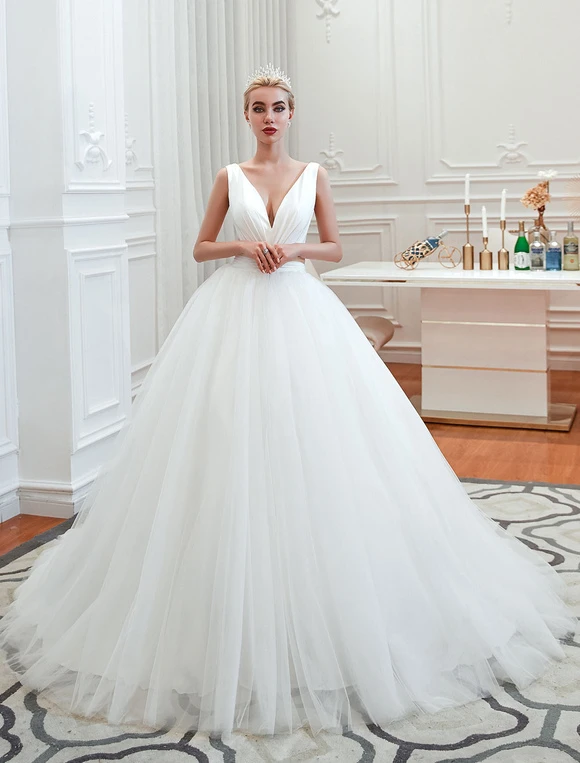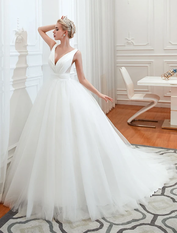 Princess Wedding Dress 2023 Ball Gown V Neck Sleeveless Court Train Bridal Gowns Free Customization