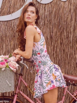 Women One Piece Swimsuits Blue Mixed Floral Print U-Neck Convertible Summer Sexy Swimming Suits