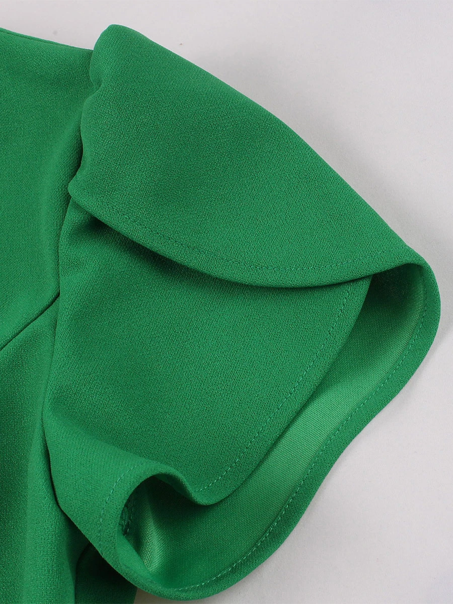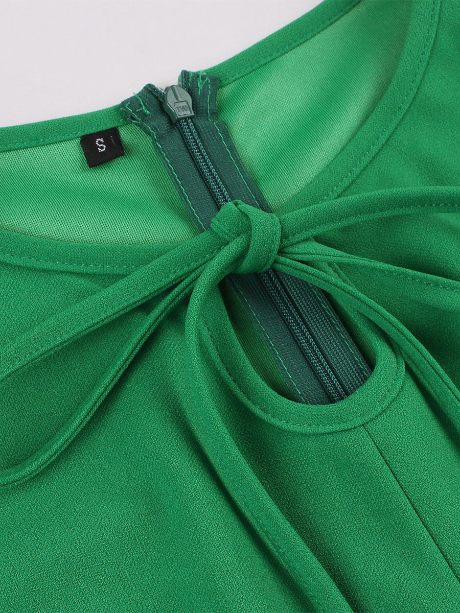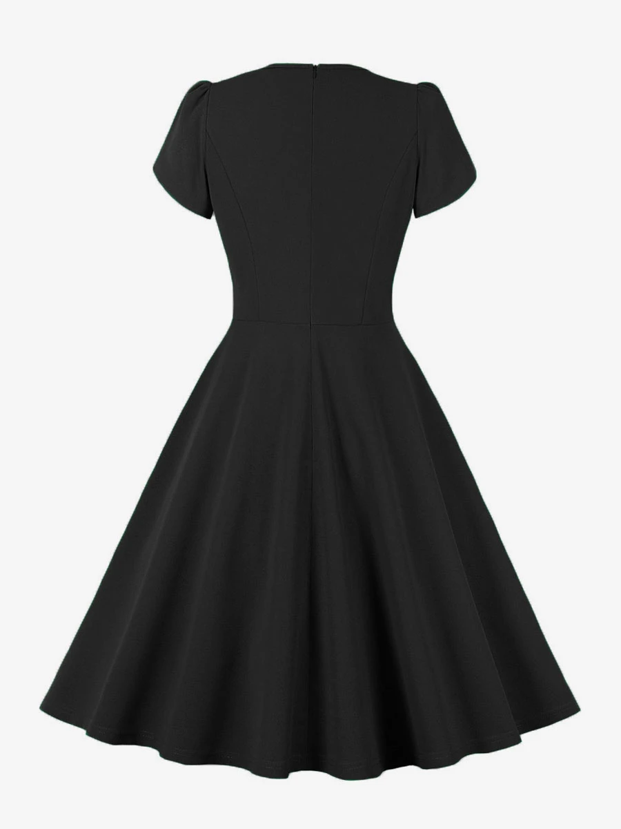Retro Dress 1950s Audrey Hepburn Style Jewel Neck Lace Up Short Sleeves Knee Length Swing Dress