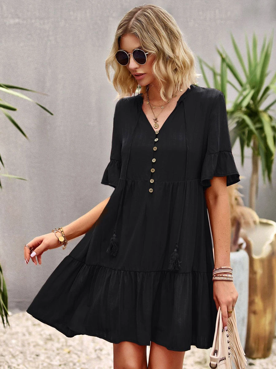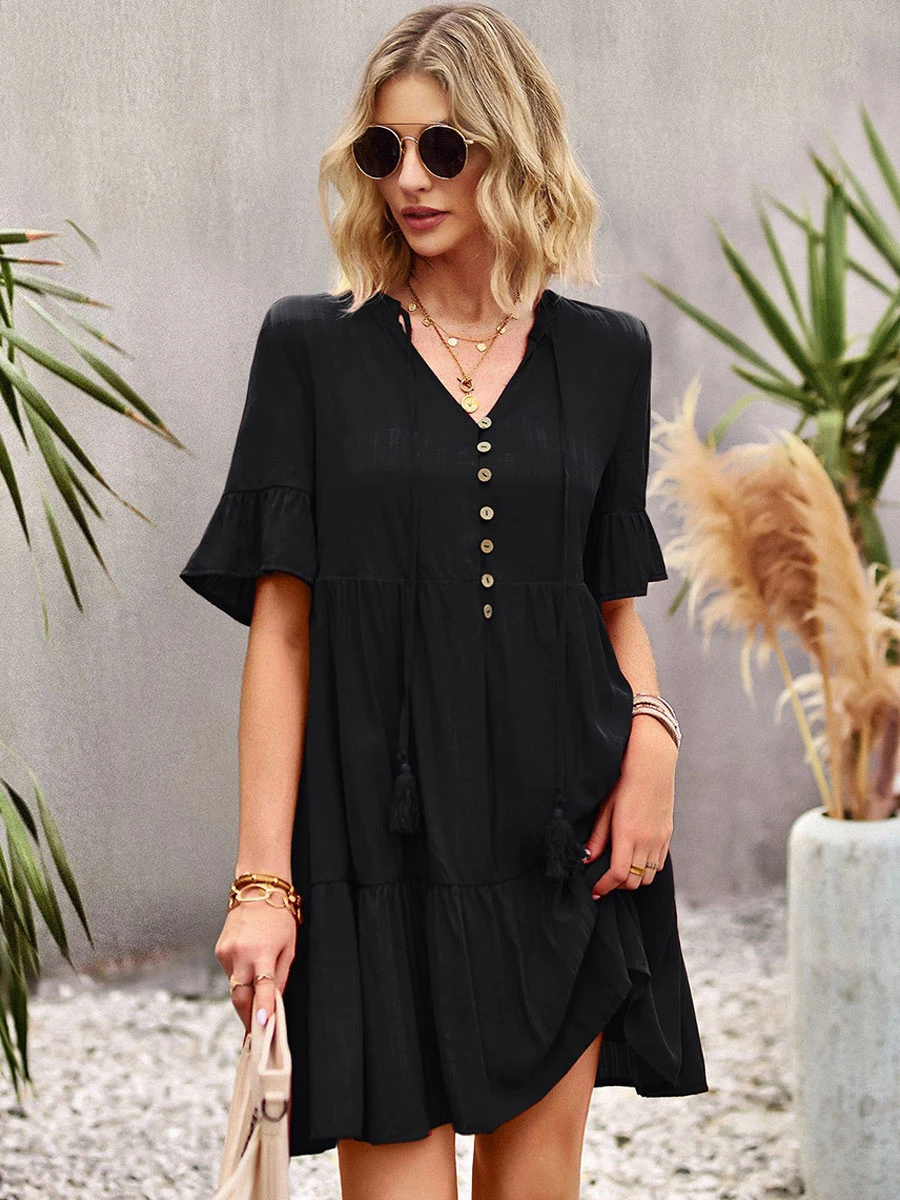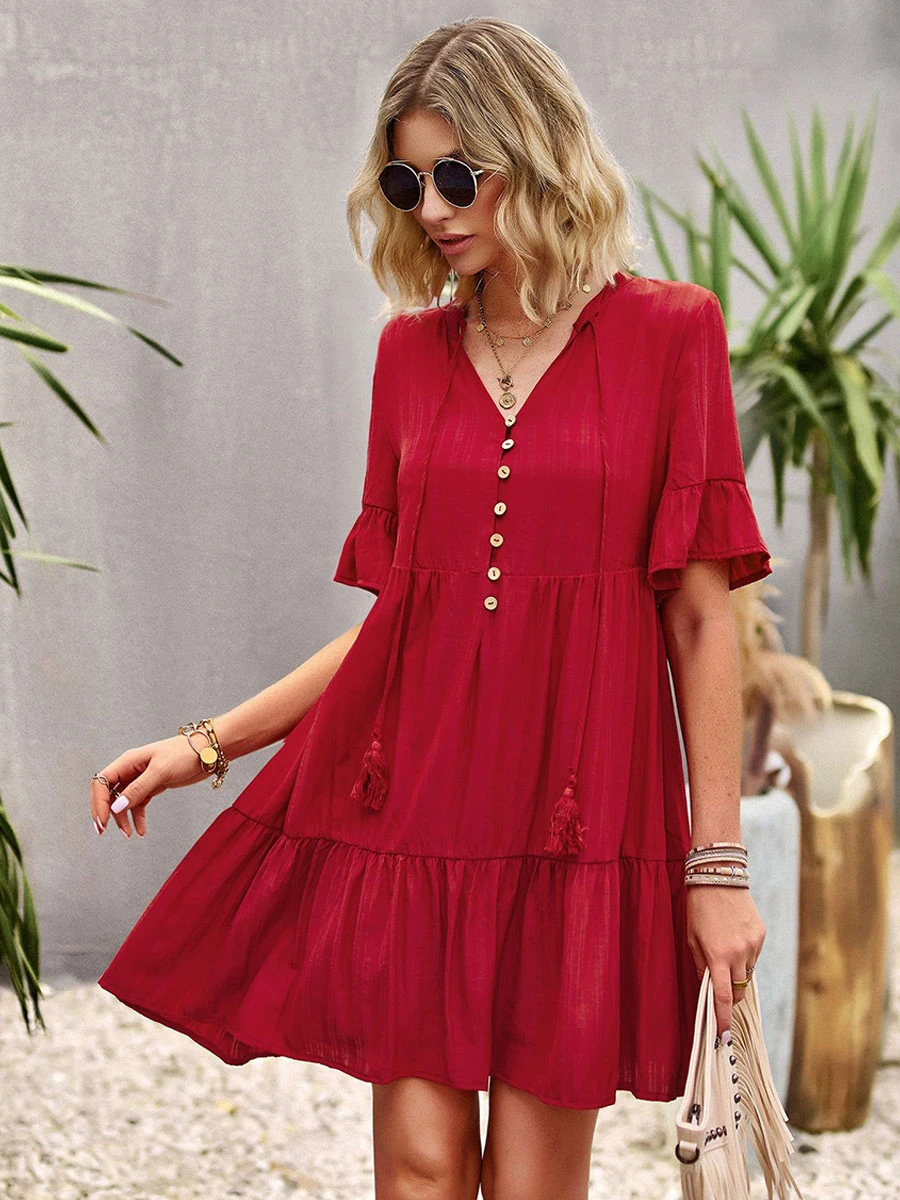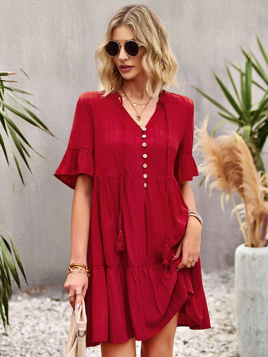 Be the first to review “Shift Dresses Short Sleeves Casual Lace Up V-Neck Pink Tunic Dress” Cancel reply