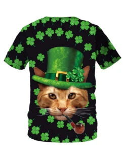 T Shirt St Patricks Day Green 3D Print Cat Clover Unisex Irish Short Sleeve Top Halloween