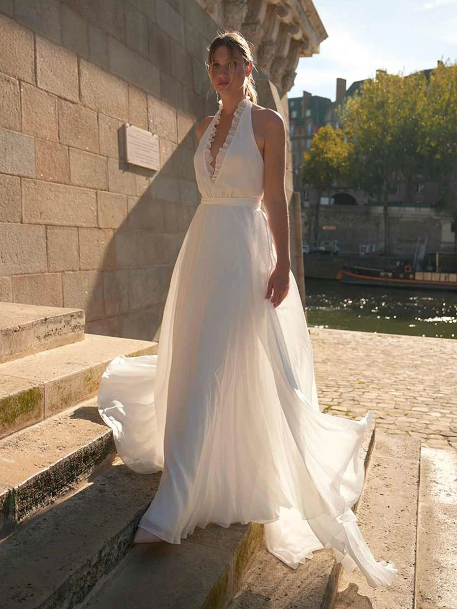 Be the first to review “Simple Wedding Dress A-Line V-Neck Sleeveless Sash Bridal Dresses” Cancel reply