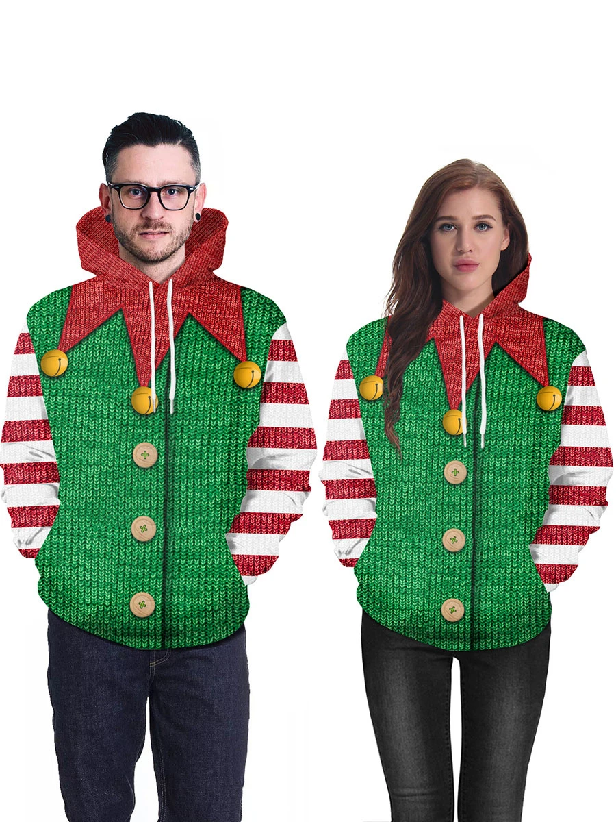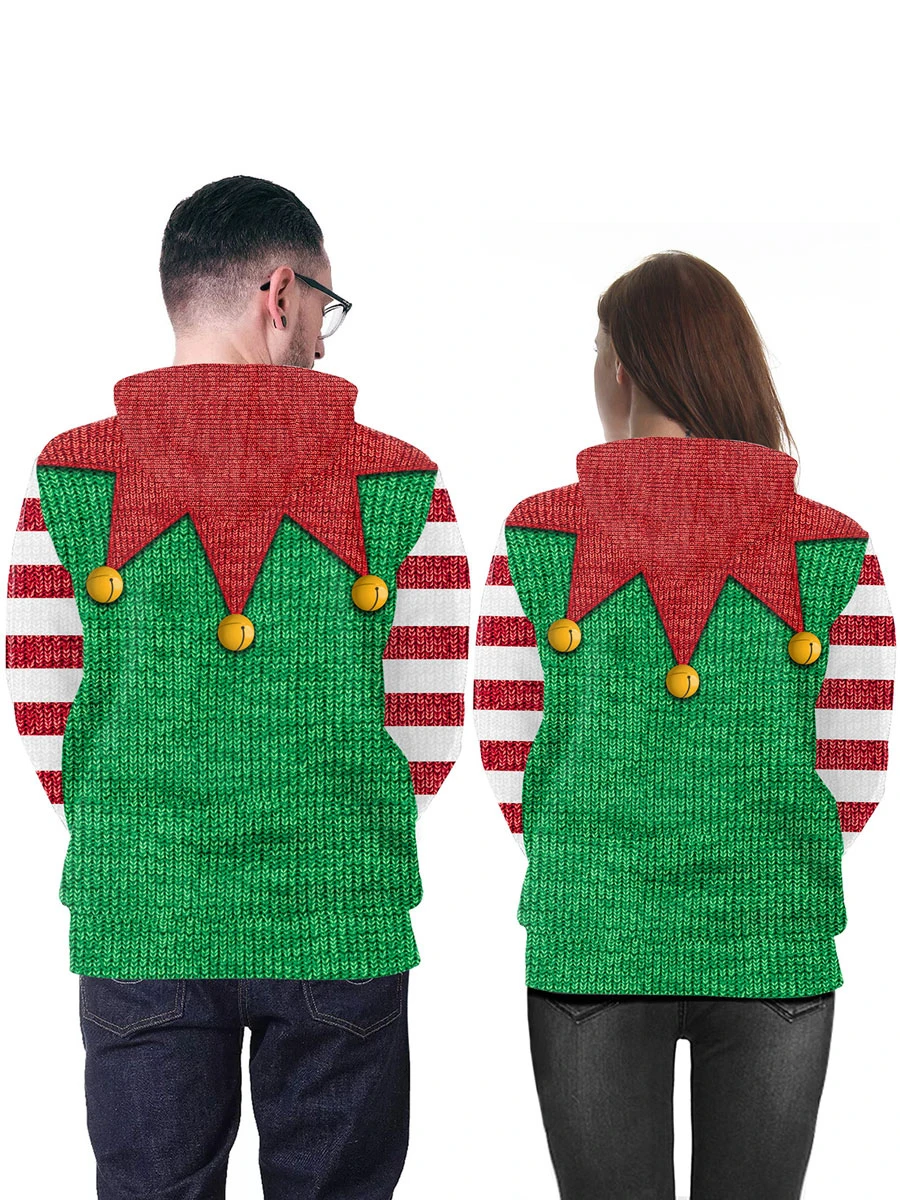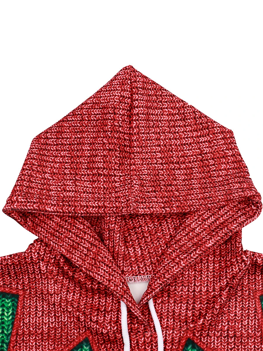 Ugly Christmas Sweater Print Long Sleeve Hoodie Top