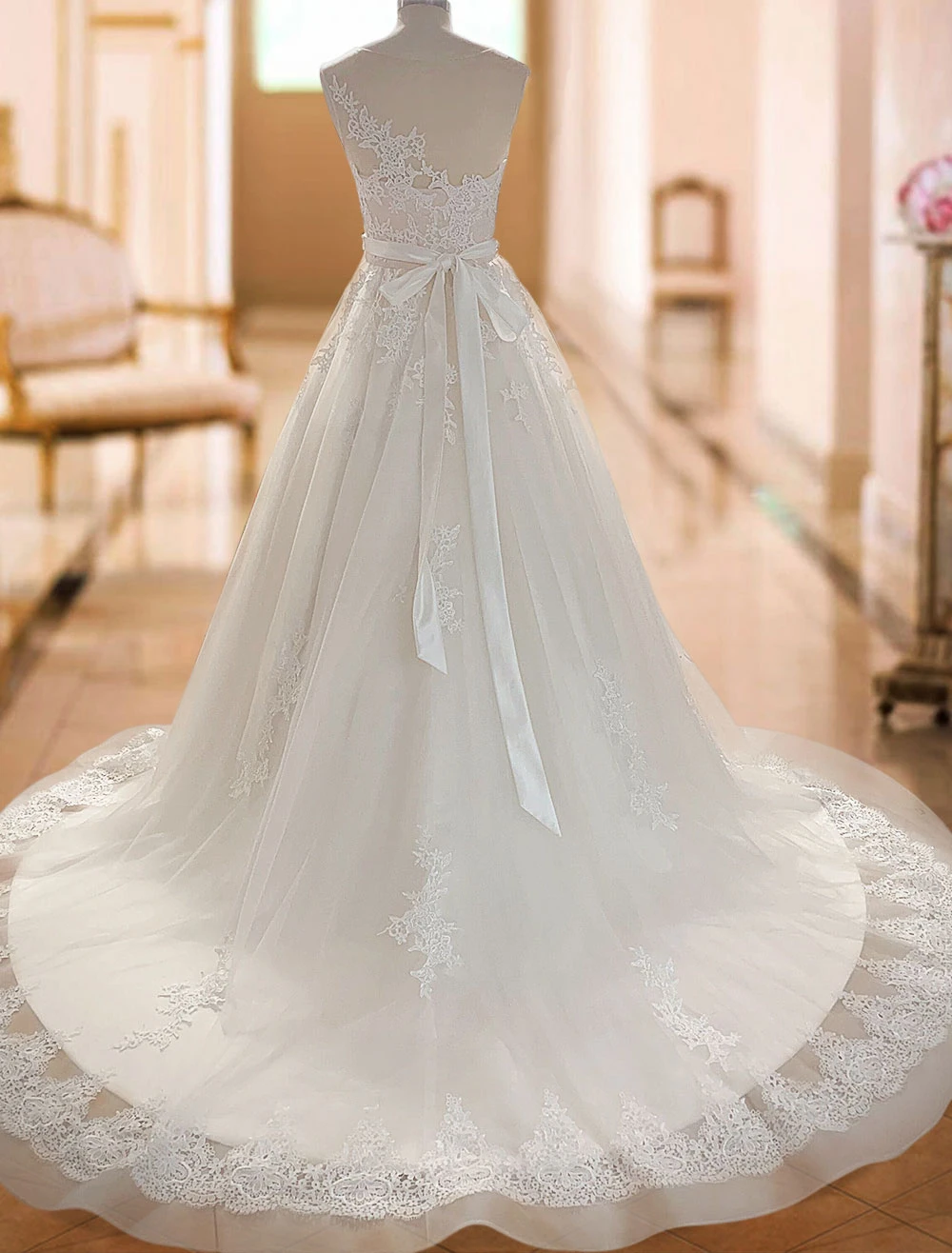 Be the first to review “Wedding Dresses 2023 Jewel Illusion Neck Sleeveless A Line Lace Flora Applique Bridal Gowns With Train” Cancel reply
