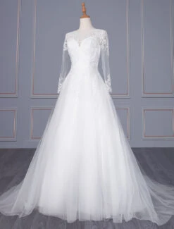 Be the first to review “White Simple Wedding Dress A-Line V-Neckline Long Sleeves Zipper Lace Tulle Bridal Dresses Free Customization” Cancel reply
