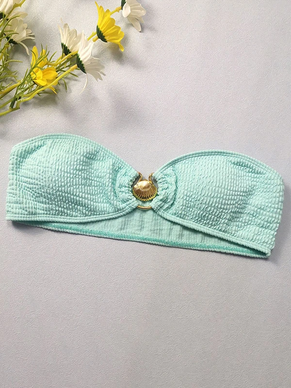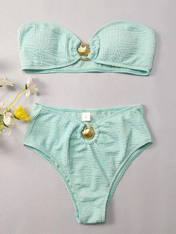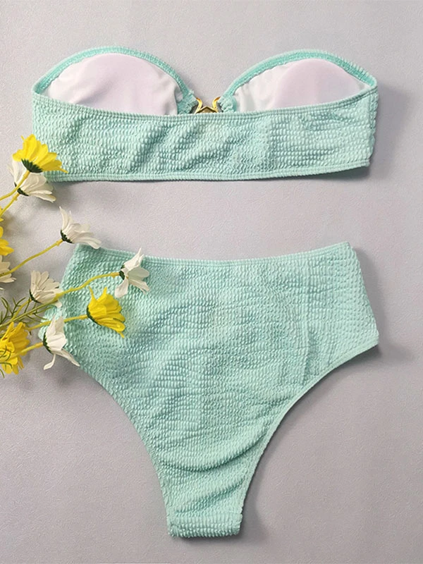 Women Bikini Swimsuit Mint Green Metal Details Strapless Raised Waist Summer Beach Swimwear