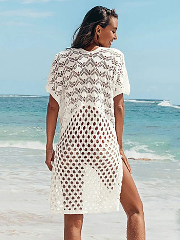 Women Cover Ups White V-Neck Short Sleeves Summer Sexy Swimwear