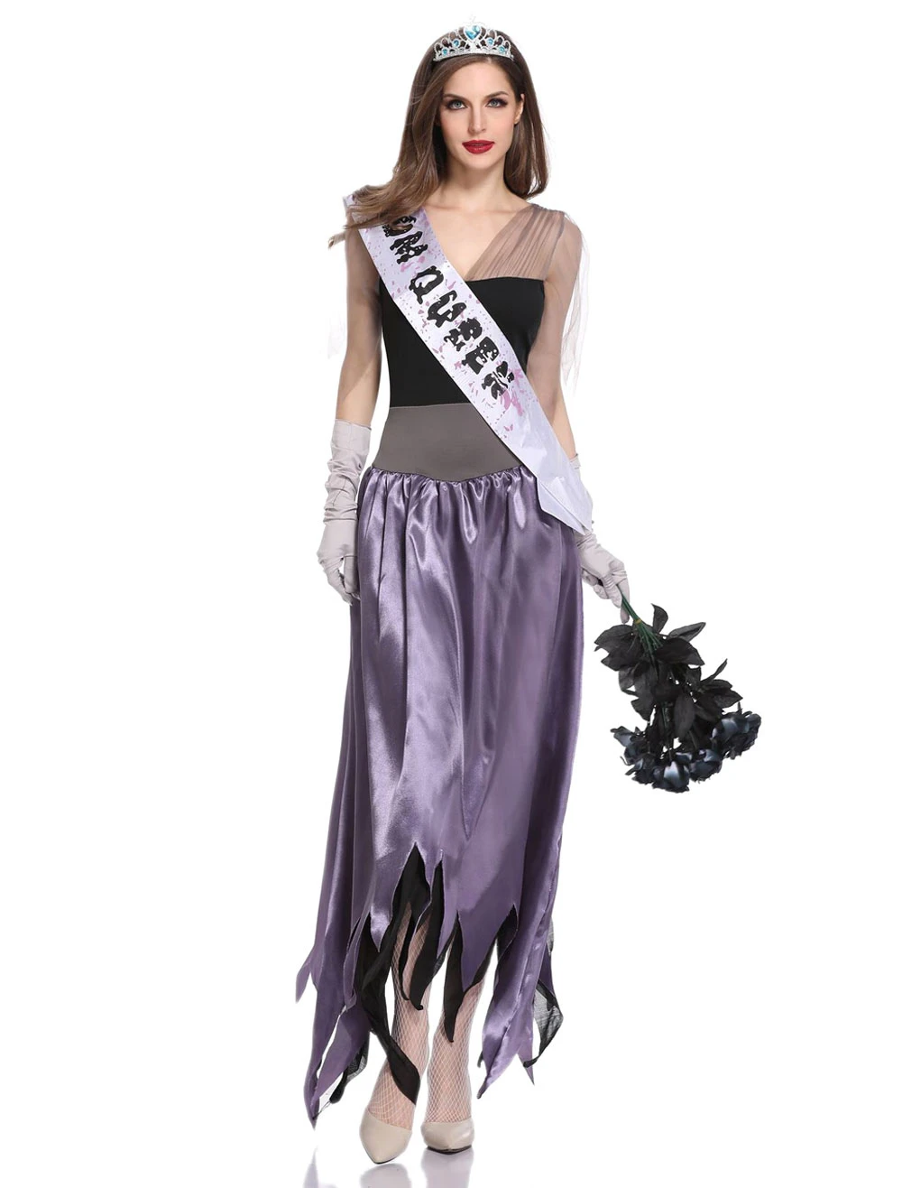 Zom Queen Costume Halloween Purple Corpse Bride Women Dresses Set